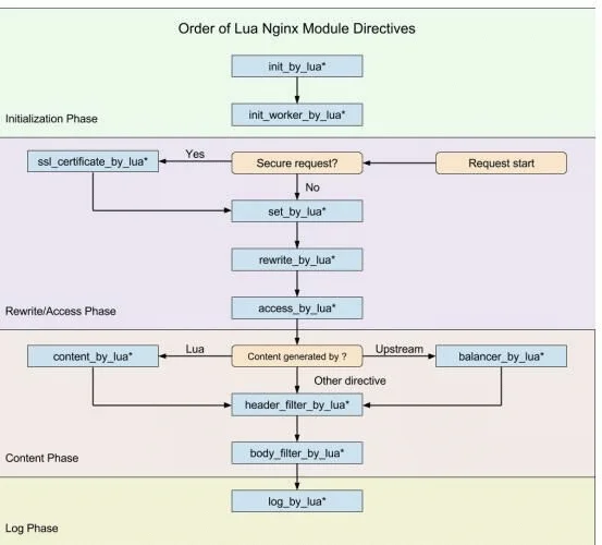 Nginx 本身在处理一个用户请求时,会按照不同的阶段进行处理,总共会分为 11 个阶段。而 openresty 的执行指令,就是在这 11 个步骤中挂载 lua 执行脚本实现扩展,我们分别看看每个指令的作用