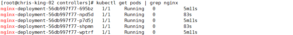 kubectl get pods | grep nginx查看,发现已经扩容为5个pod